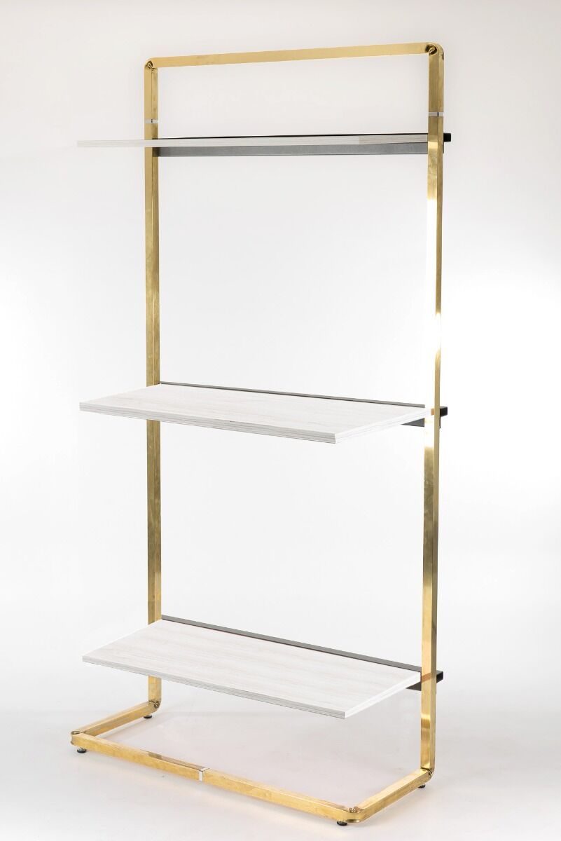espositore da parete SPECTACLE modulabile e con struttura in ottone